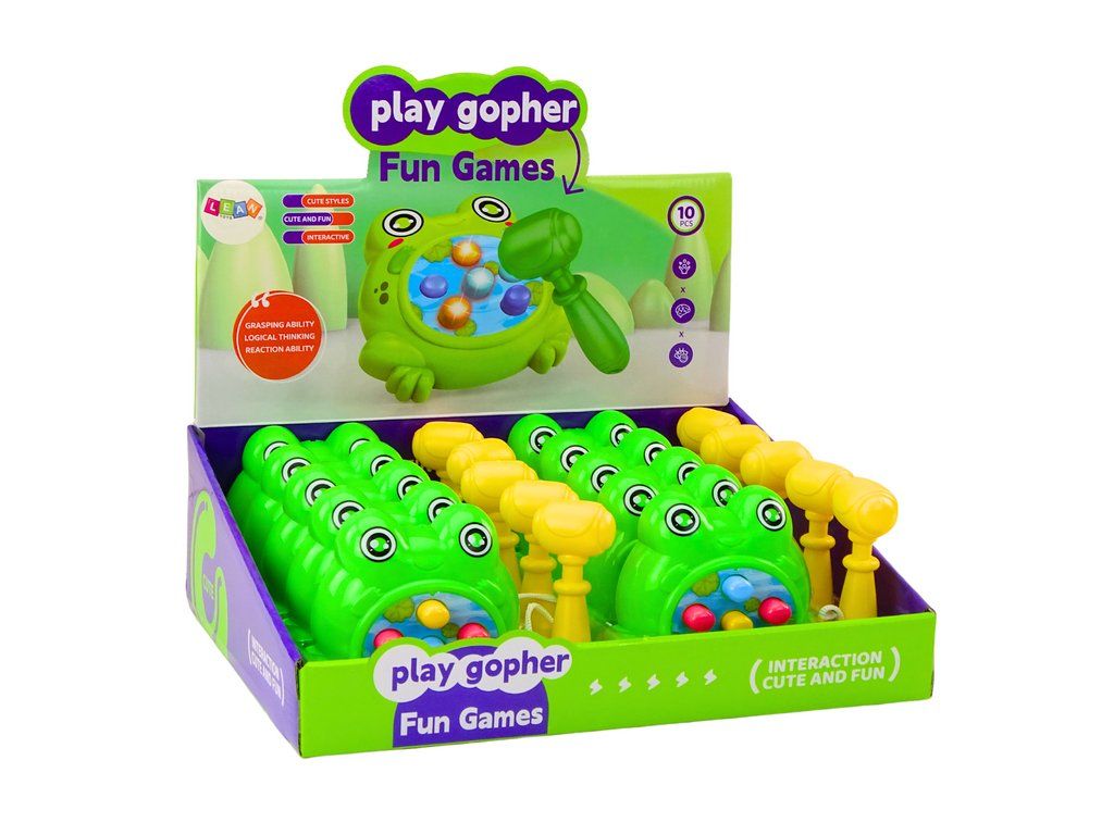 Mini gioco Whack-A-Mole rana con martello a corda verde