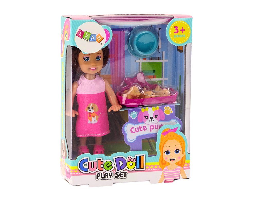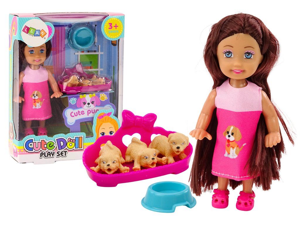 Mini bambola capelli lunghi vestito tre cagnolini cuccia