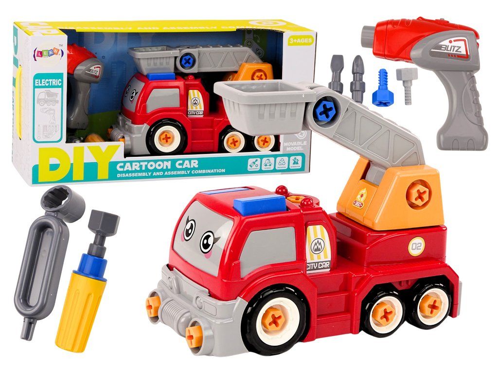 Camioncino da assemblare DIY rosso con braccio