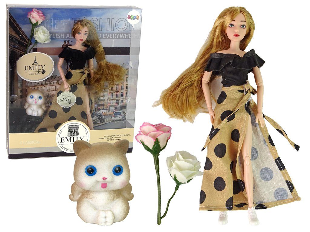Presentiamo la bambola Emily con lunghi capelli e un adorabile gattino. Questo giocattolo piacerà a ogni bambina che ama giocare a fare la casalinga o la famiglia. Il gioco insegna la responsabilità, sviluppa l'immaginazione e le abilità manuali.