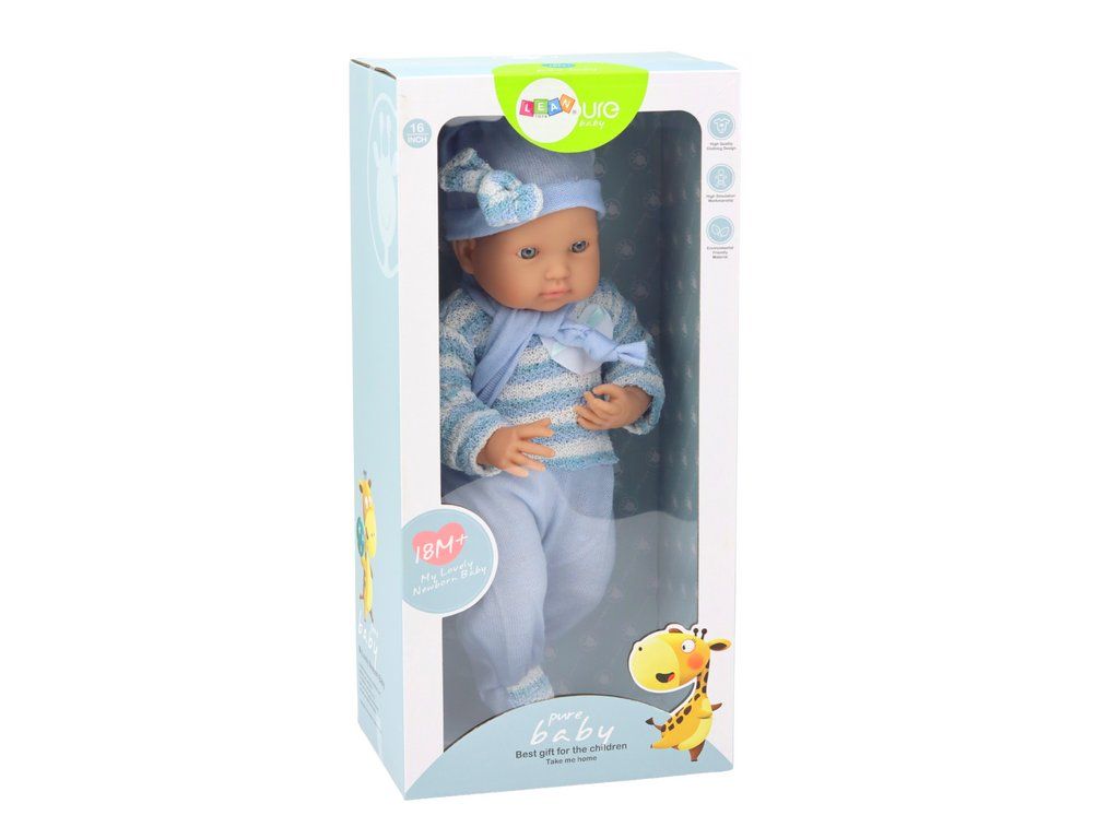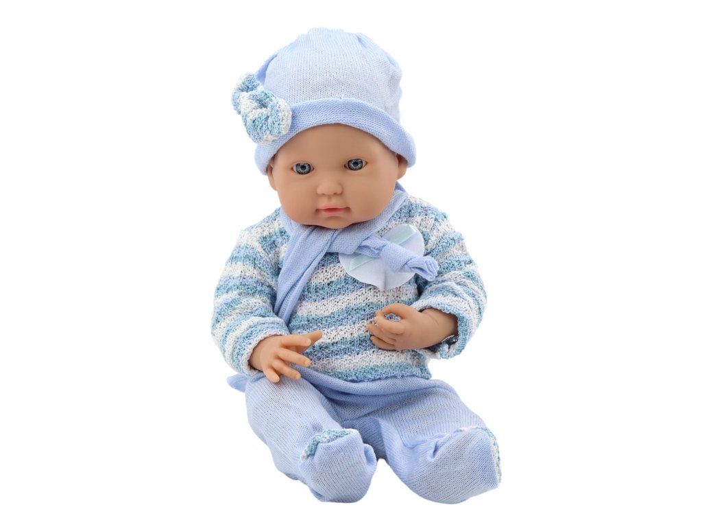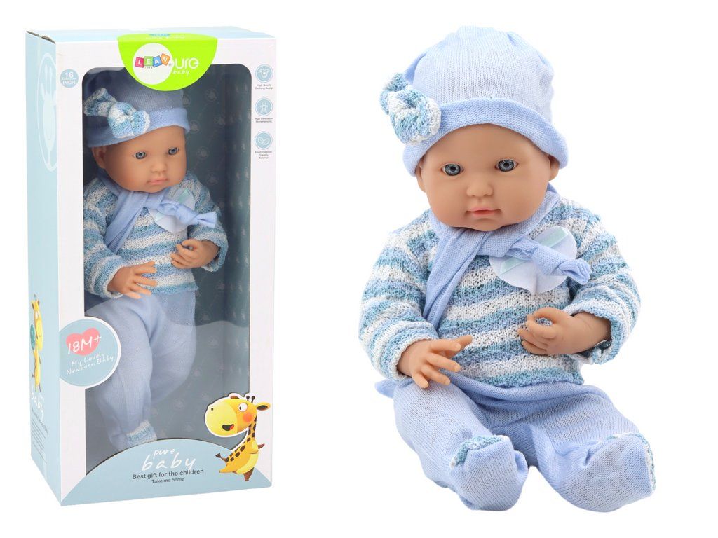 Bambola Neonata Maglione a Righe, Cappellino e Sciarpa Blu