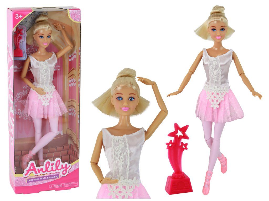 La bambola Anlily ballerina con dimensioni di 30 cm x 7 cm x 5 cm è una vera ballerina che trasporta i bambini in un mondo magico di danza. I suoi lunghi capelli biondi raccolti in un elegante chignon, gli occhi azzurri e il trucco delicato conferiscono al personaggio fascino e grazia.
