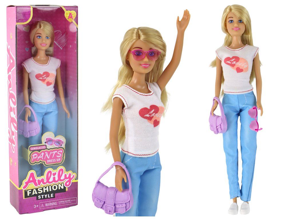 Bambola Anlily con blusa bianca, borsa e occhiali