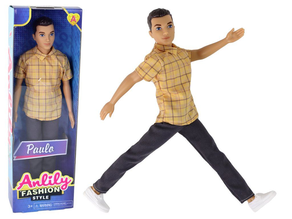 La bambola per bambini Paulo è un adorabile amico pronto per giocare insieme. Paulo indossa pantaloni scuri alla moda e una camicia a quadri gialla con maniche corte. Il suo aspetto è completato da scarpe sportive bianche. Paulo ha i capelli castani e gli occhi blu, che gli conferiscono un carattere unico. La bambola ha arti mobili, che rendono il gioco più interessante e permettono movimenti realistici. Il giocattolo consente al bambino di sviluppare abilità manuali e stimola la creatività e l'immaginazione.