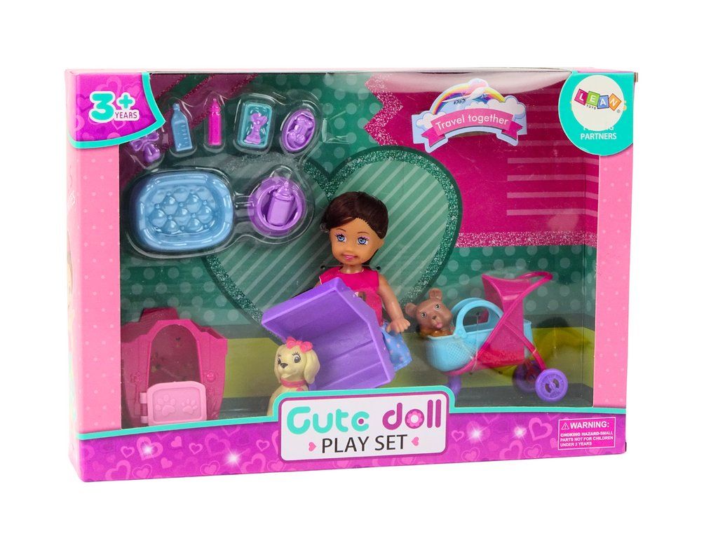 Bambola con cani, casetta e accessori cuccioli rosa 16 pz.