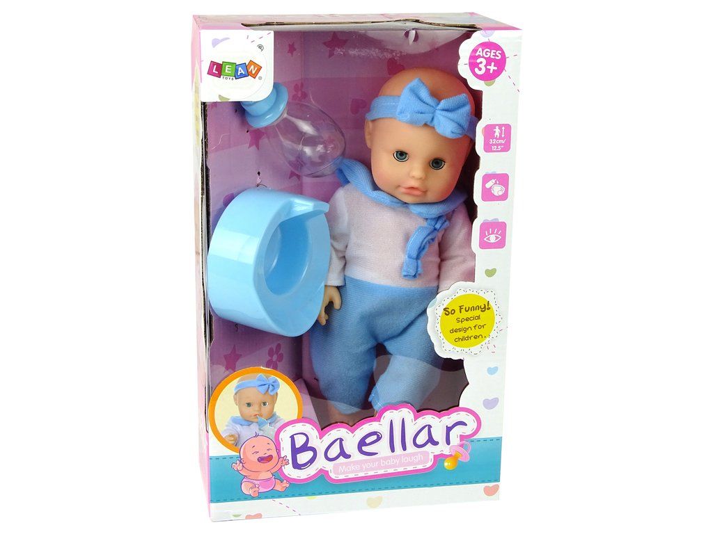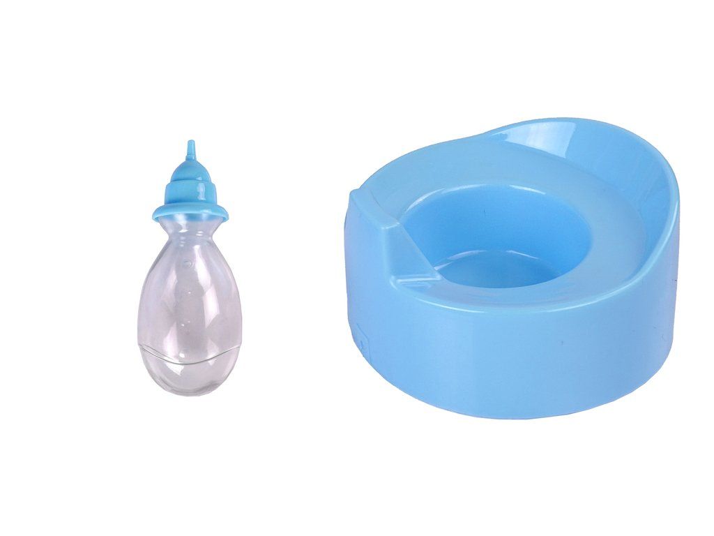 Bambola in pigiama con vasino e bottiglietta 30 cm blu