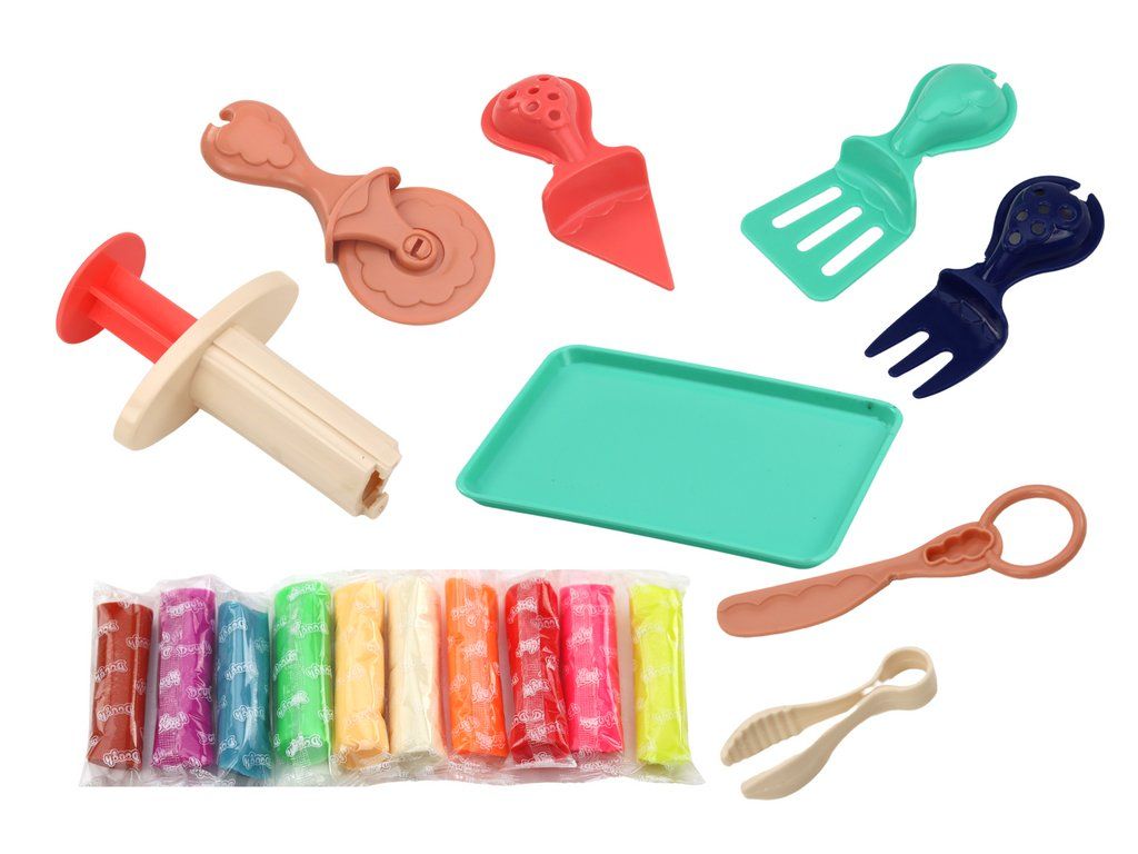 Il unicorno ha un supporto su cui sono stampati vari forme come farfalle, stelle, cuori o animali. Nella confezione ci sono anche 4 accessori per modellare come un coltello o una paletta, così tuo figlio ha la possibilità di creare un numero maggiore di forme con la plastilina.