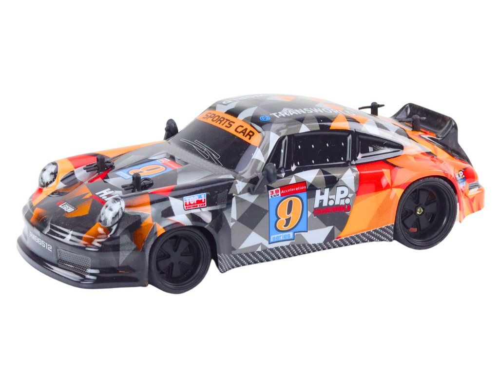 Auto radiocomandata 1:18 con ruote in gomma Drift arancione