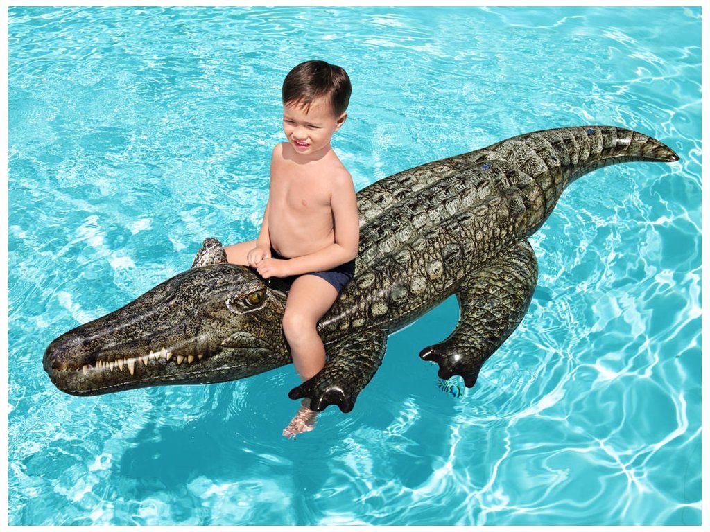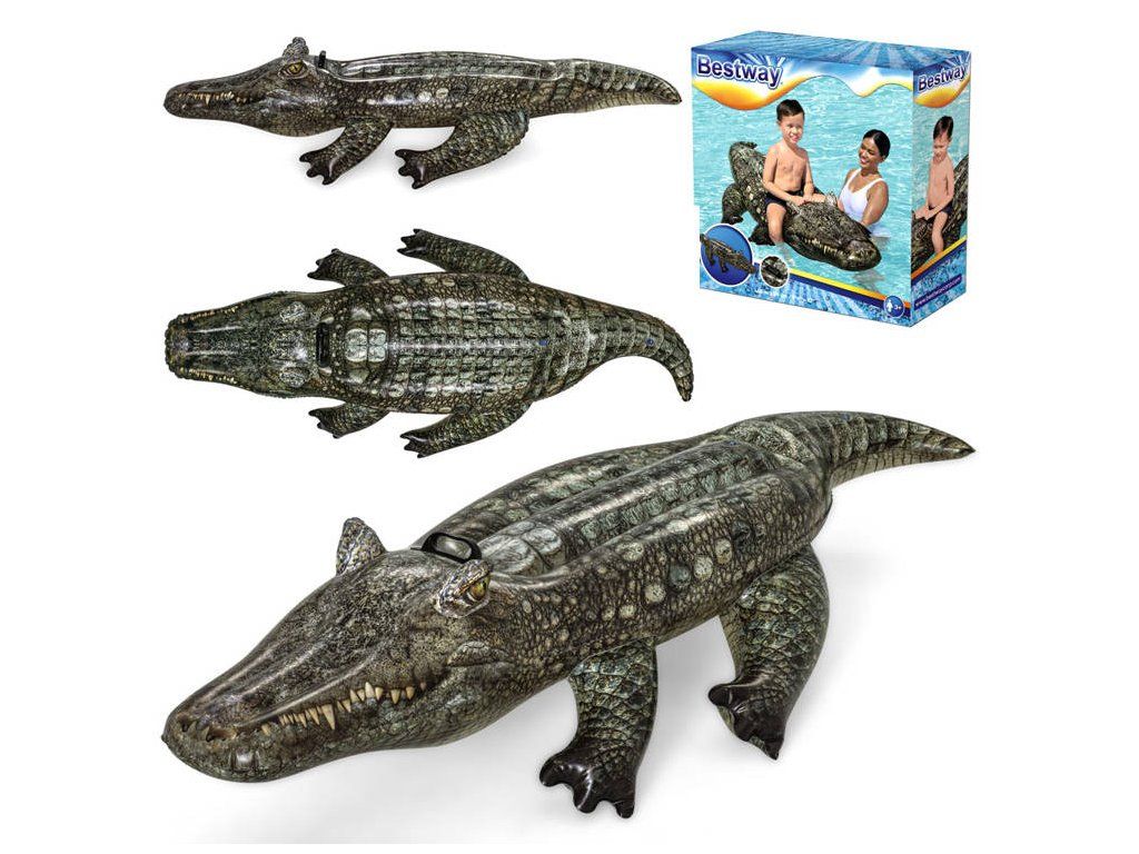 Il gonfiabile da nuoto Coccodrillo di Bestway è un ottimo compagno d'acqua. Il prodotto con dimensioni 193 x 94 cm è realizzato in vinile di alta qualità. La capacità massima è di 45 kg. Il giocattolo ha due camere d'aria e valvole che prevengono la fuoriuscita d'aria. È stabile e sicuro, destinato a bambini a partire da 3 anni. Sulla schiena ha una maniglia per la presa, a cui il tuo bambino può aggrapparsi. Nella confezione è inclusa una toppa di riparazione.
