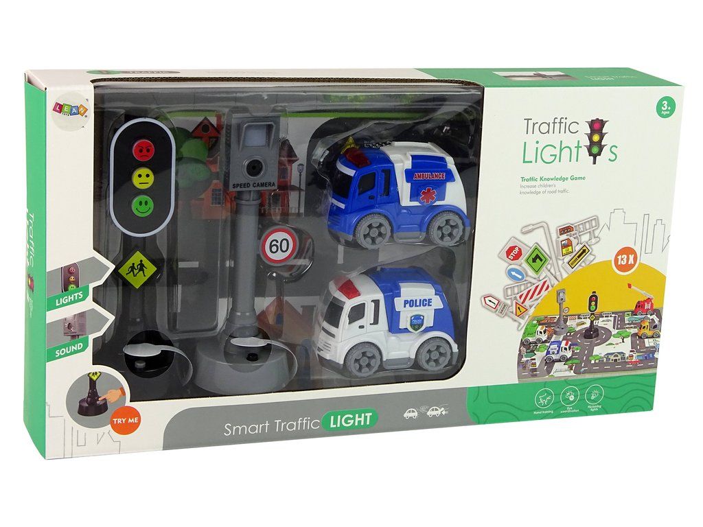 Presentiamo un set di macchinine con segnalazione luminosa e segnali stradali. Un set ideale per insegnare le regole del traffico e il movimento sicuro per le strade. Questo set è un giocattolo educativo che in futuro sarà utile per tuo figlio.