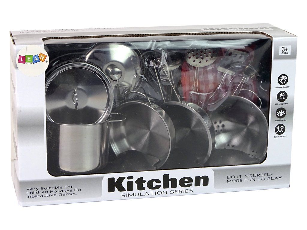 Tutti gli accessori da cucina sono di colore argento, il che conferisce loro un aspetto realistico. Il nostro set supporta magnificamente lo sviluppo dell'immaginazione e delle abilità culinarie durante il gioco.