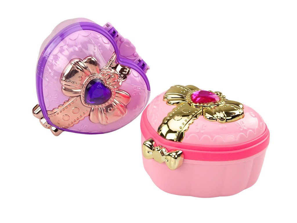 Scatola stilosa a forma di cuore, decorata con dettagli dorati. Sulla sua sommità si trova un grande cuore colorato, disponibile in variante rosa o viola, che attira l'attenzione e aggiunge fascino. Il set include molti accessori diversi. Bracciale elegante e colorato, ideale per completare qualsiasi outfit. Fermagli pratici e decorativi, che aiutano a creare diverse acconciature. Anello carino, che aggiunge brillantezza alla piccola manina. Pettine pratico, ideale per l'uso quotidiano e per sistemare i capelli. Elastico per capelli funzionale ed estetico, che tiene i capelli in posizione. Set di scintillanti pietre colorate, da utilizzare per decorazioni o come parte di gioielli.