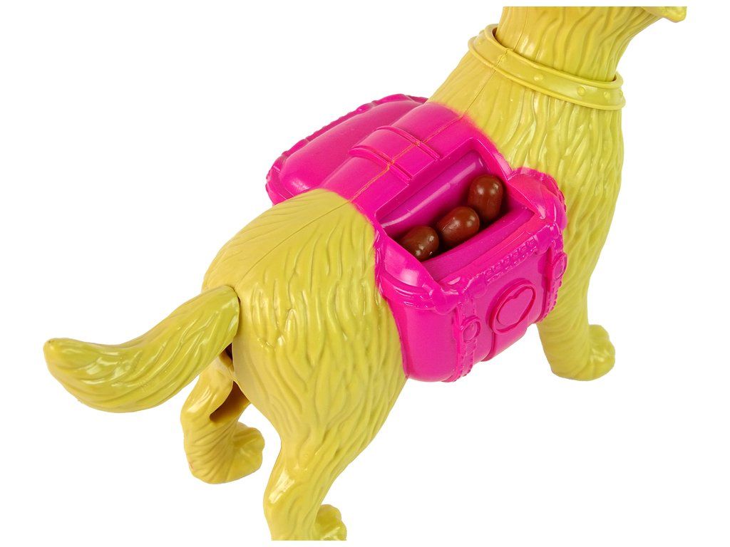 Il cagnolino ha una coda, orecchie e musetto mobili e nasconde nella pancia uno spazio per il cibo. I bambini possono nutrirlo con una ciotola e poi rimuovere nuovamente il cibo per riutilizzarlo. Non manca nemmeno il guinzaglio per le passeggiate e accessori per una cura completa.