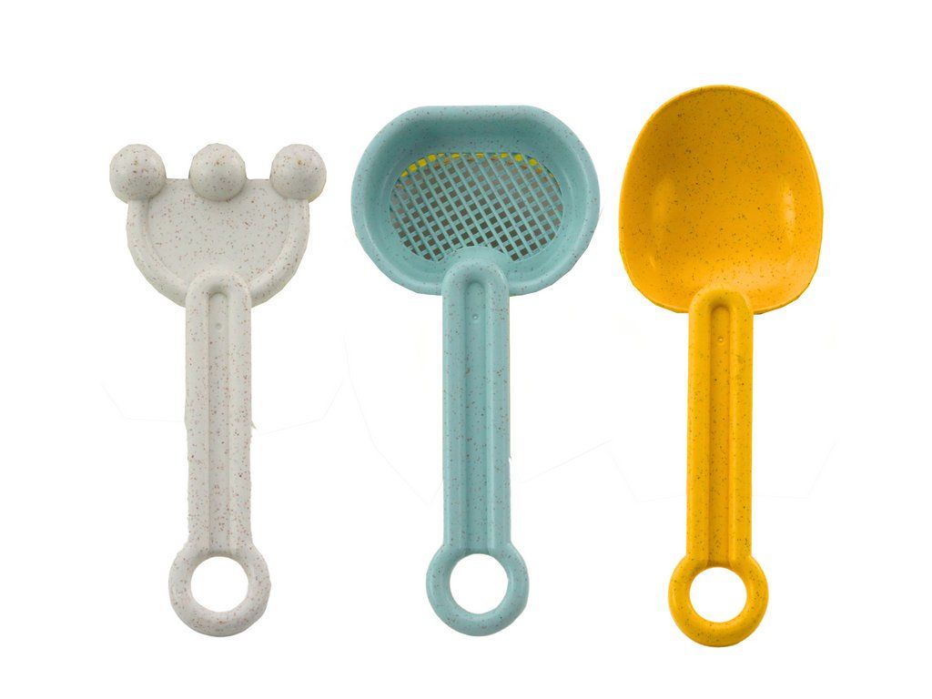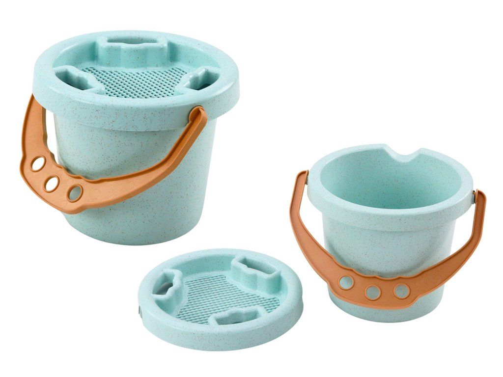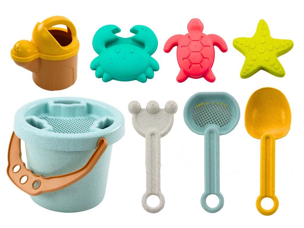 Set da spiaggia in secchiello con paletta e formine pastello