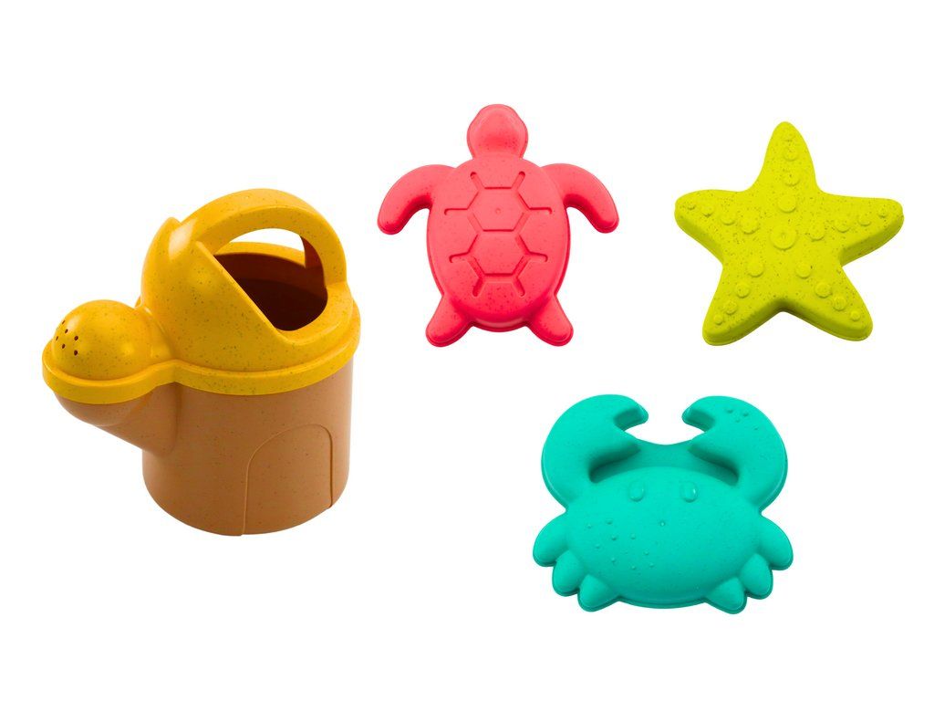 Set di giocattoli da sabbia: mulino, formine, castelli e annaffiatoio rosa