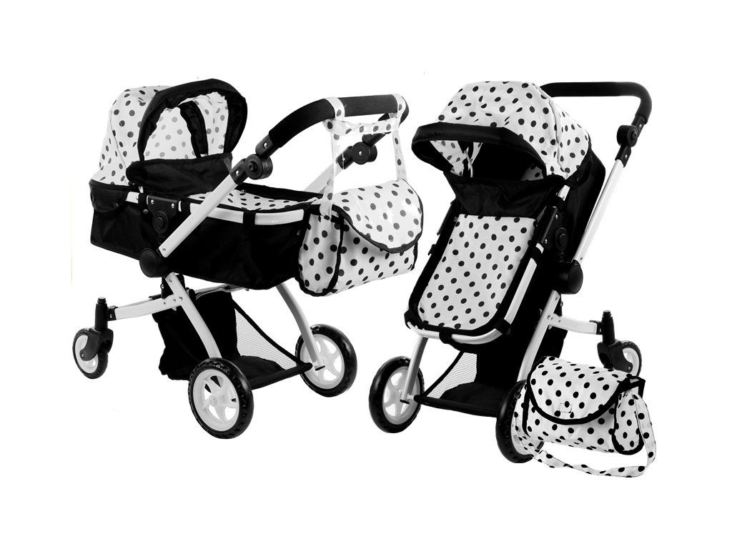 Carrozzina per bambole Alice 2in1 bianco e nero