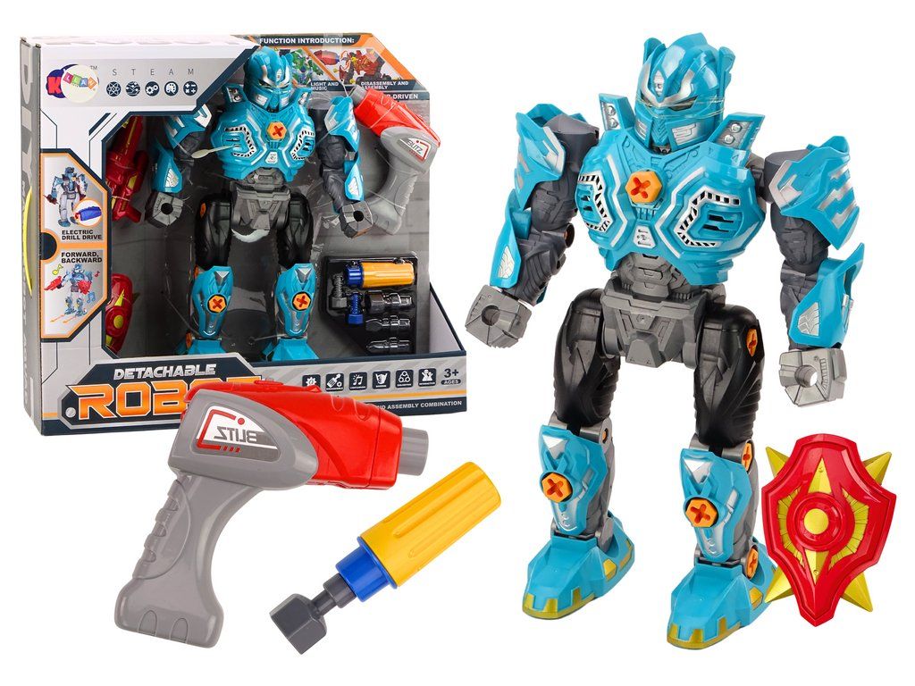 Robot avvitatore con arma, trapano, cacciavite, luci e suoni, turchese