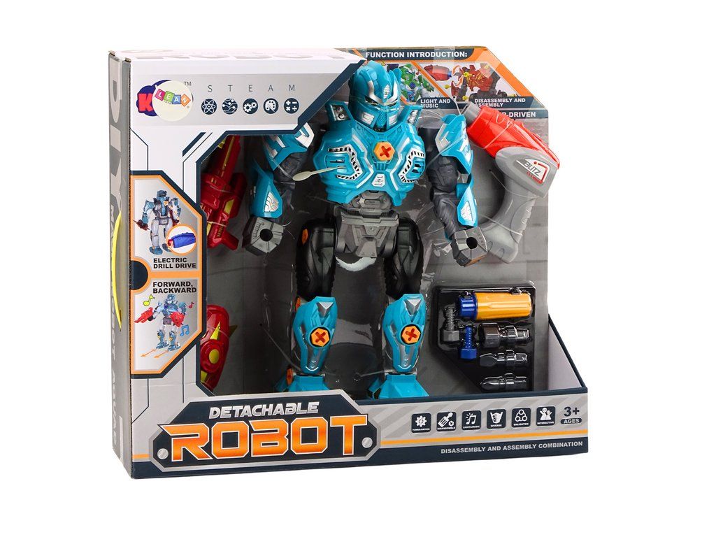 Dopo aver assemblato il robot, la batteria del trapano può essere utilizzata come motore, permettendo al robot di muoversi. Questa funzione aumenta notevolmente l'interattività del gioco, consentendo al bambino di essere ancora più coinvolto nell'attività. Il movimento del robot aggiunge realismo e dinamismo, rendendo il gioco più emozionante. Un'altra attrazione sono gli effetti luminosi e sonori che il robot produce durante il gioco. Gli elementi luminosi e i suoni realistici catturano l'attenzione del bambino e aumentano le sensazioni di interazione con il giocattolo.