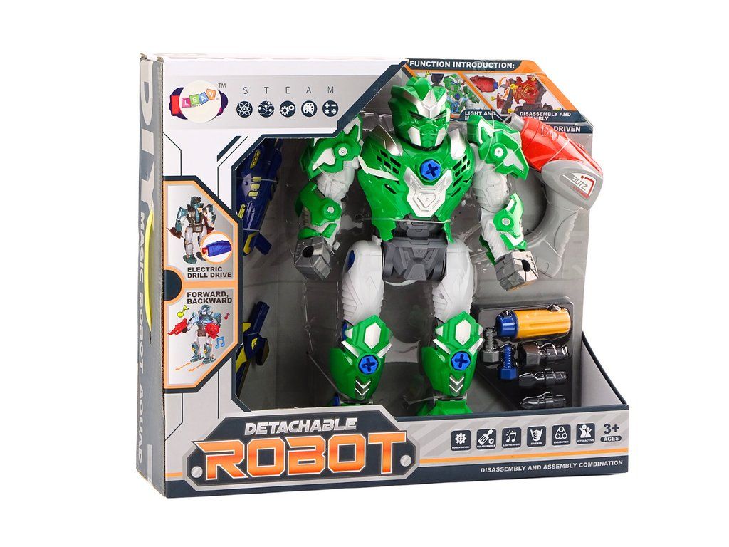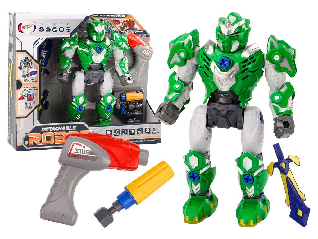 Robot avvitatore con arma, trapano e cacciavite con luci e suoni verde