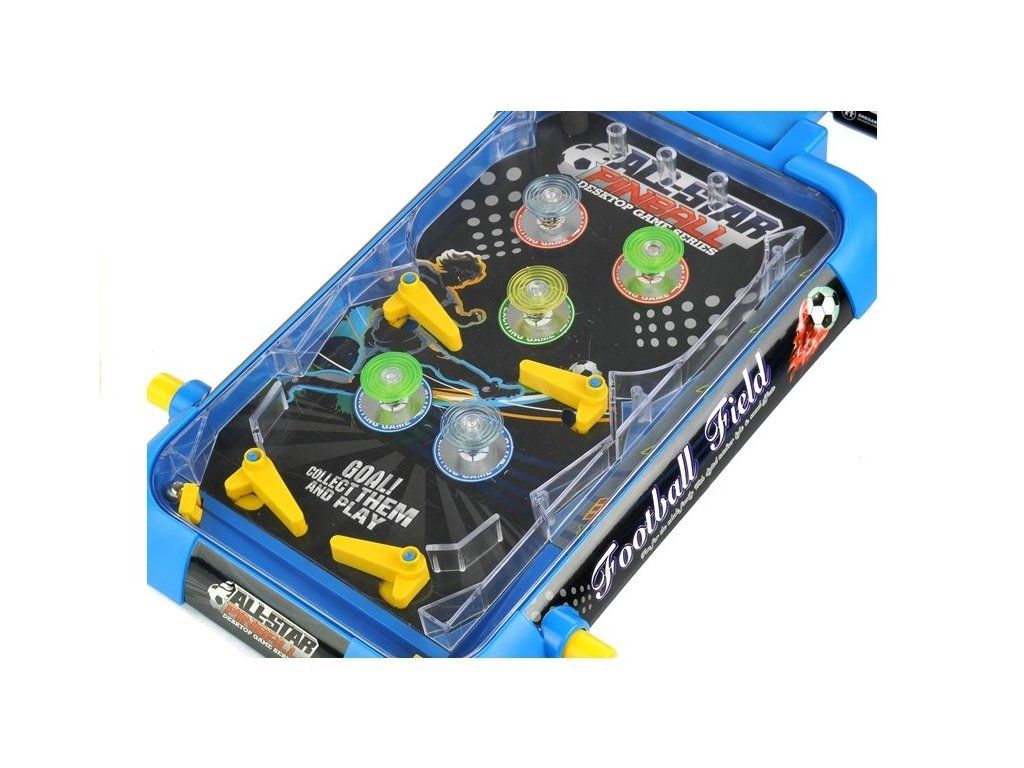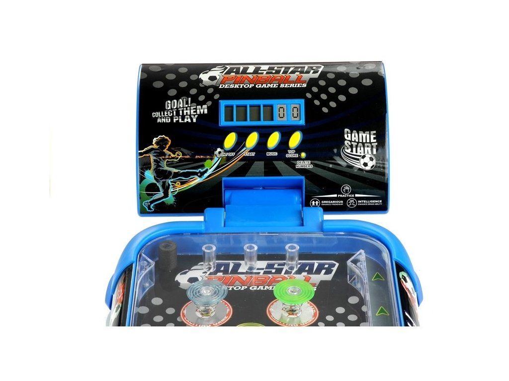 Pinball è un gioco classico le cui regole sono molto semplici. Il giocatore colpisce la pallina argentata verso l'alto e poi, utilizzando le gambe mobili posizionate ai lati della struttura, la rimbalza il più in alto possibile. È importante che la pallina colpisca gli elementi posizionati sul tavolo: il contatto garantisce ulteriori punti che appariranno sul display LCD. Più a lungo la pallina volerà sulla superficie, meglio sarà. Il divertimento termina quando la pallina argentata cade nel foro situato nella parte inferiore della macchina. Dopo aver acceso il gioco, premi il pulsante ON / OFF e poi il pulsante START posizionato accanto ad esso. Il gioco è destinato a tutti i bambini a partire dai 4 anni.
