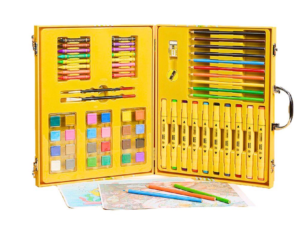All'interno della valigetta si trova tutto il necessario per realizzare progetti artistici. Il set contiene pastelli, pastelli a olio, pennarelli doppia punta, colori, due pennelli, una gomma e un temperamatite.