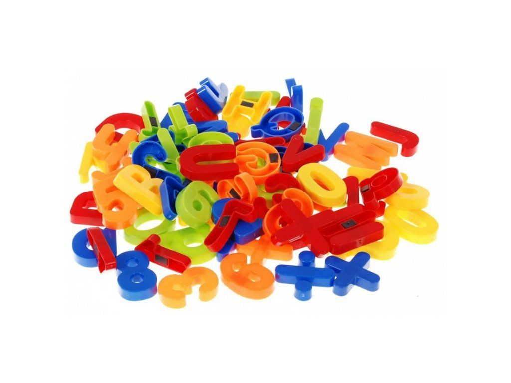 Lettere, simboli e numeri che si attaccano alla lavagna magnetica. I bambini impareranno l'alfabeto e le basi dell'aritmetica. Grazie alla lavorazione colorata, l'insegnamento sarà più efficace e soprattutto un po' più divertente per i bambini.
