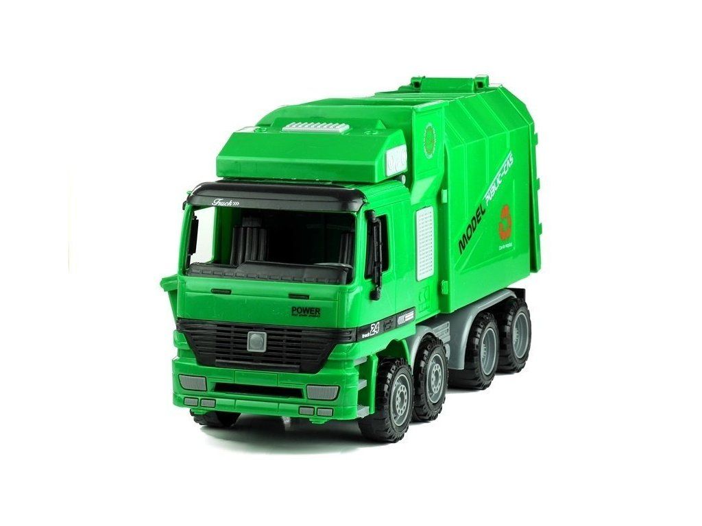 Camion della spazzatura con bidone verde