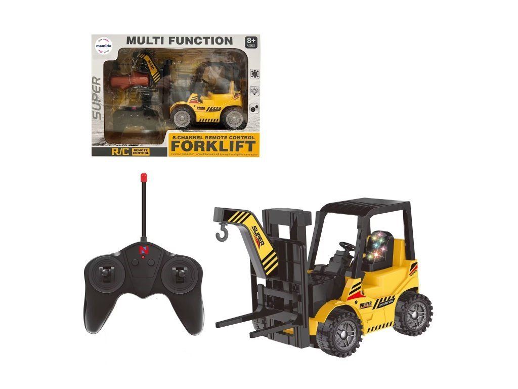 Carrello elevatore radiocomandato con controllo realistico e sollevamento funzionale delle forche consente movimenti avanti / indietro, sterzata a sinistra e a destra e sollevamento o abbassamento del carico. Include anche un attacco a gancio e un carico (tronco), che rende l'addestramento al carico ancora più divertente. Il modello è dotato di effetti luminosi e di una batteria ricaricabile con cavo di ricarica USB. Il controllo è semplice e il giocattolo è adatto per bambini a partire dagli 8 anni.